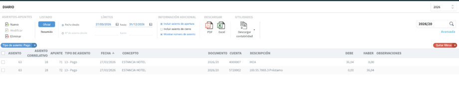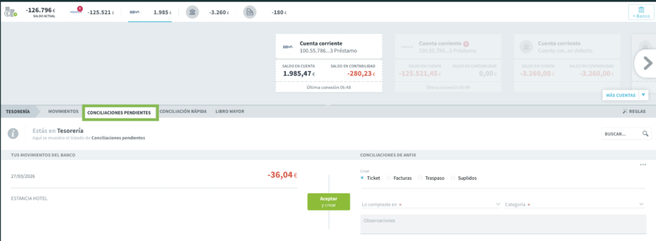 Si gestionas la contabilidad de la empresa, también puedes hacerlo desde Negocio→Tesorería → Conciliación rápida.