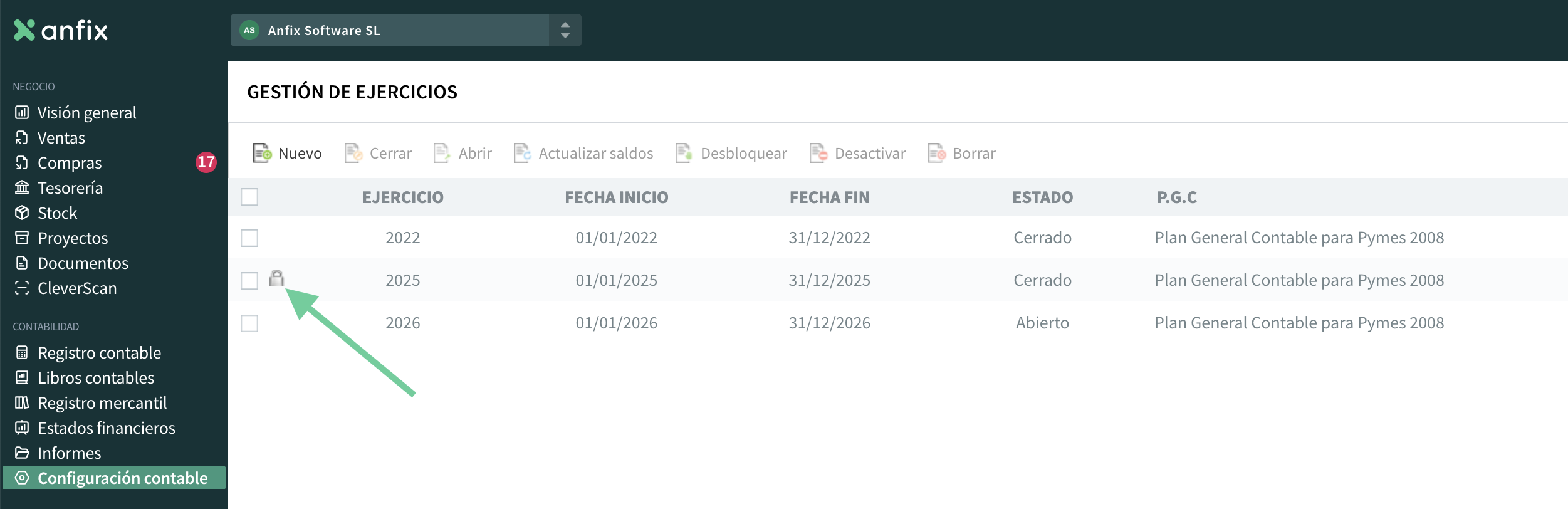 - Un ejercicio bloqueado es aquel en el que no se permiten más contabilizaciones.