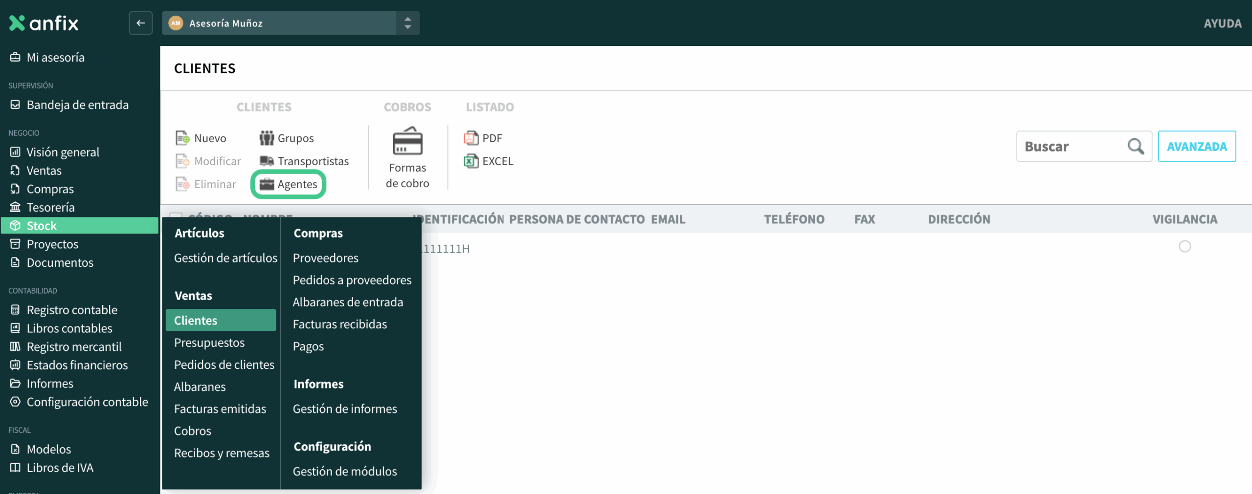 Los agentes en el módulo de Stock te permiten crear fichas de agente, asociarlas a clientes y utilizarlas en los documentos de venta. Además, el nombre del agente se muestra al imprimir presupuestos y puedes filtrar las facturas emitidas por agente desde la búsqueda avanzada.