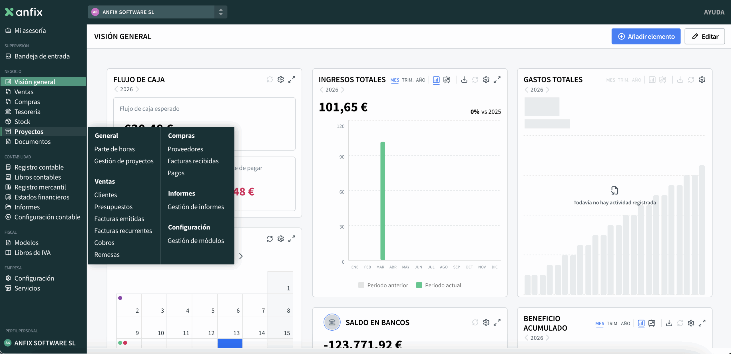 El flujo de facturación de proyectos en anfix es el siguiente: