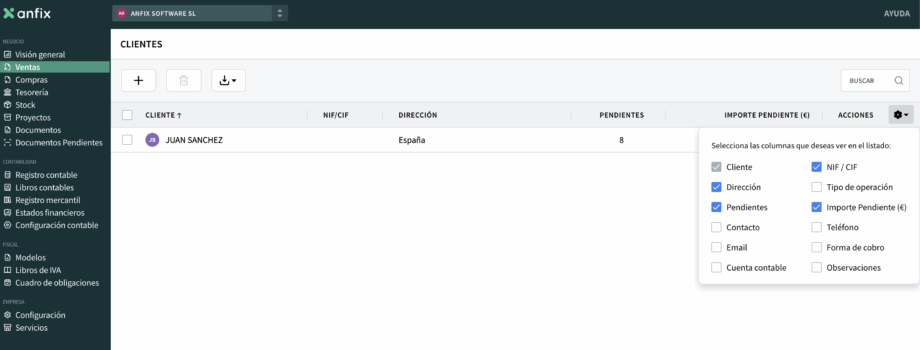 Columnas configurables en clientes