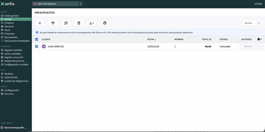 - Accede al listado de presupuestos.