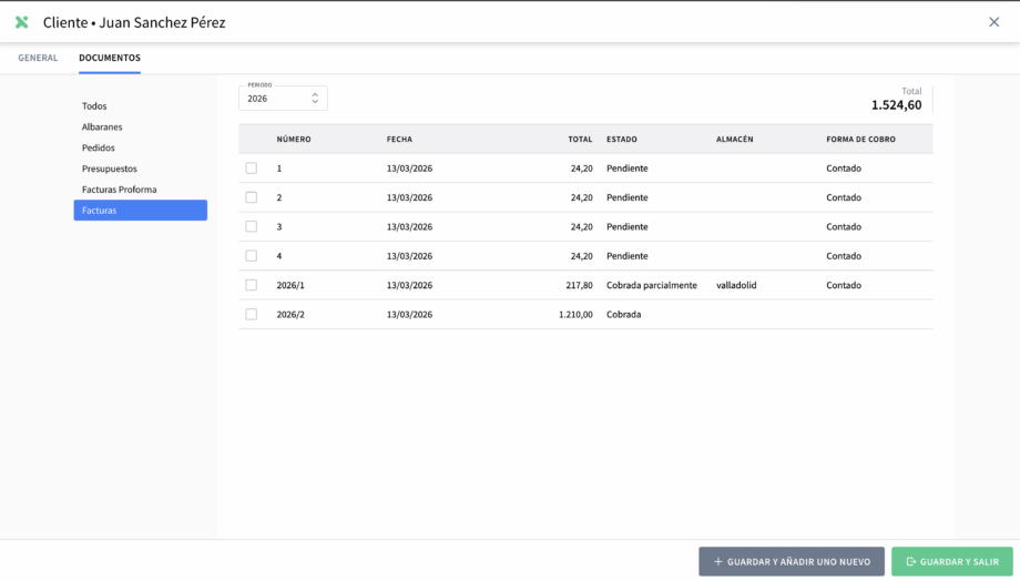 Dentro del apartado Facturas verás todas las facturas de ese cliente.