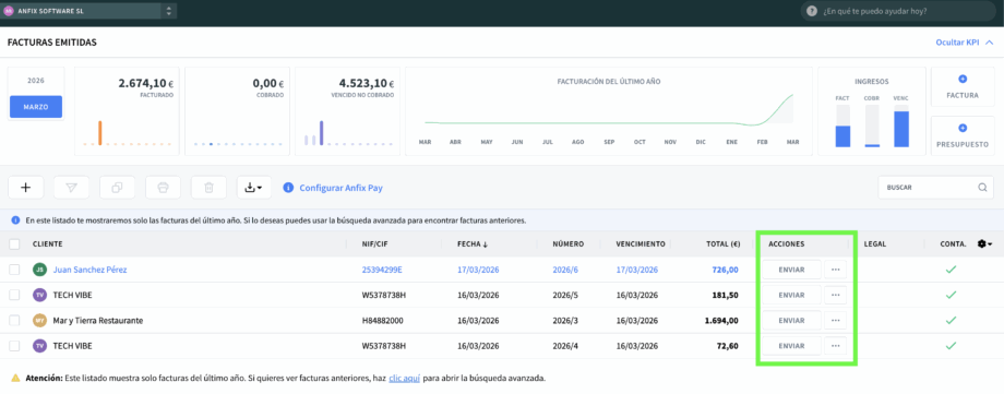 Enviar una factura desde el listado