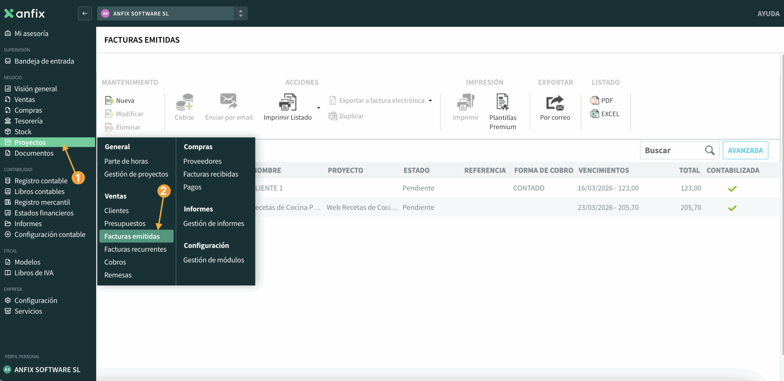 CÓMO ACCEDER AL LISTADO DE FACTURAS EMITIDAS