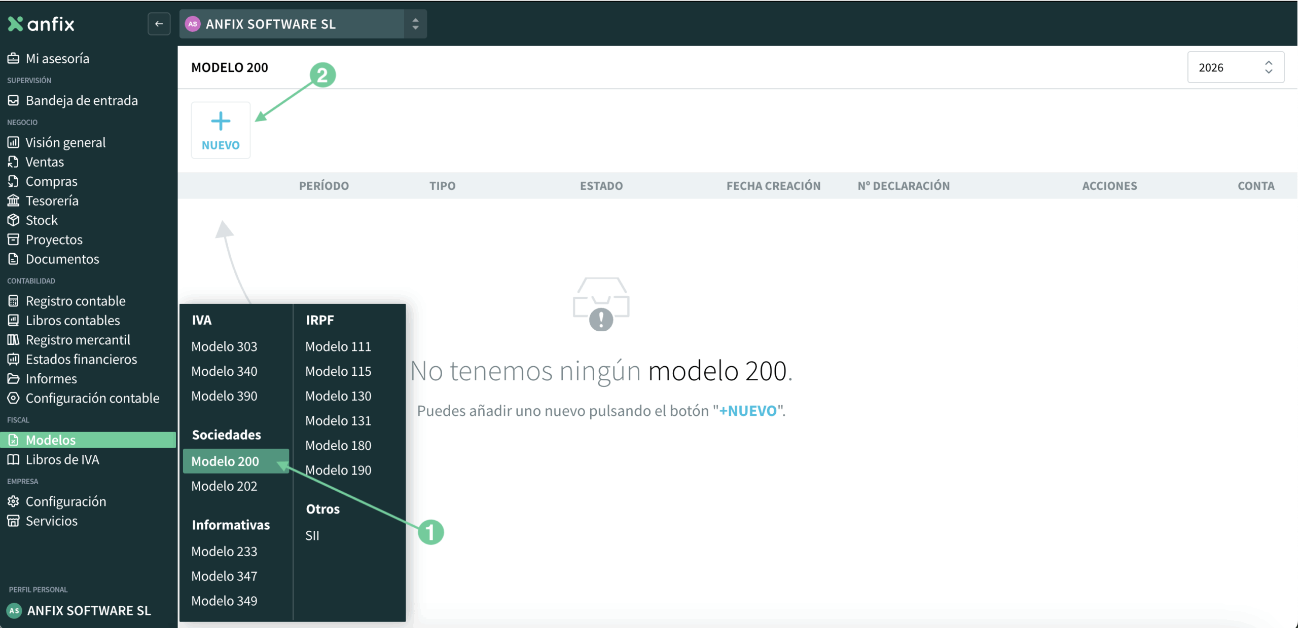 Para generar el modelo 200 debes seguir los siguientes pasos: