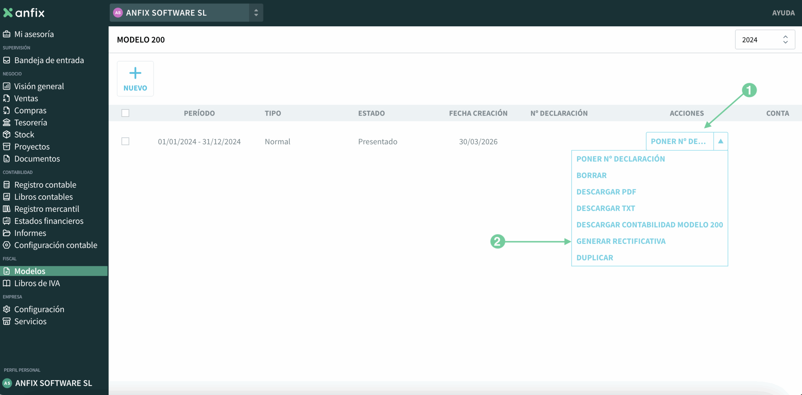 En este artículo te explicamos cómo generar el modelo 200 en Anfix, revisar la información incluida y obtener los archivos necesarios para presentarlo en la web de la Agencia Tributaria. También verás cómo registrar después el número de declaración y el justificante de presentación