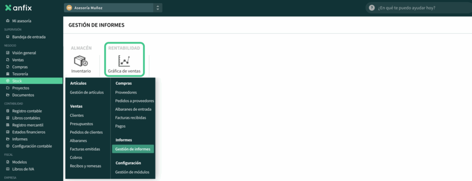 1. Ve a Stock → Gestión de informes.