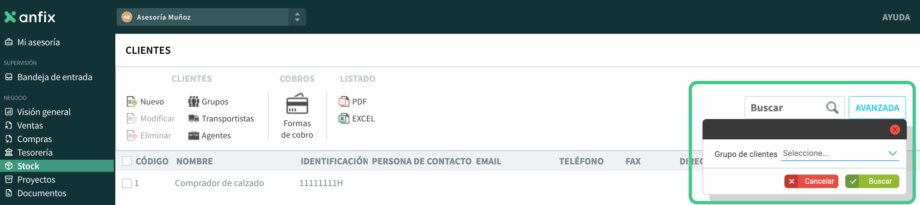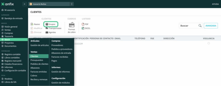 Los grupos de clientes te permiten clasificar a tus clientes dentro del módulo de Stock y después utilizar esa clasificación para filtrar información en distintos listados. Una vez creados y asignados a cada ficha de cliente, podrás usarlos en la búsqueda avanzada de clientes, presupuestos, pedidos, albaranes y facturas de venta.