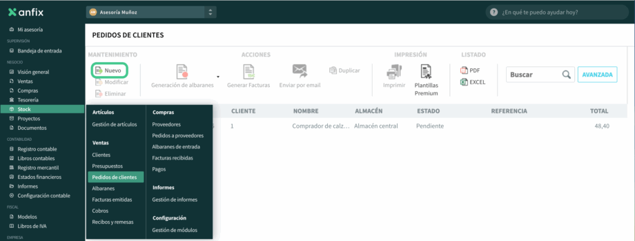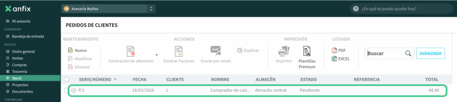 - Entra en Stock → Pedidos de clientes.