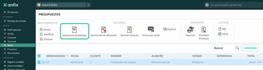Si ya has creado un presupuesto, puedes generar el pedido directamente desde ese documento.