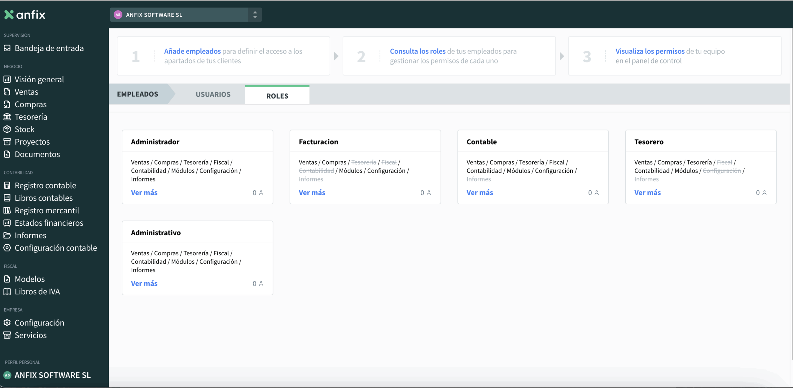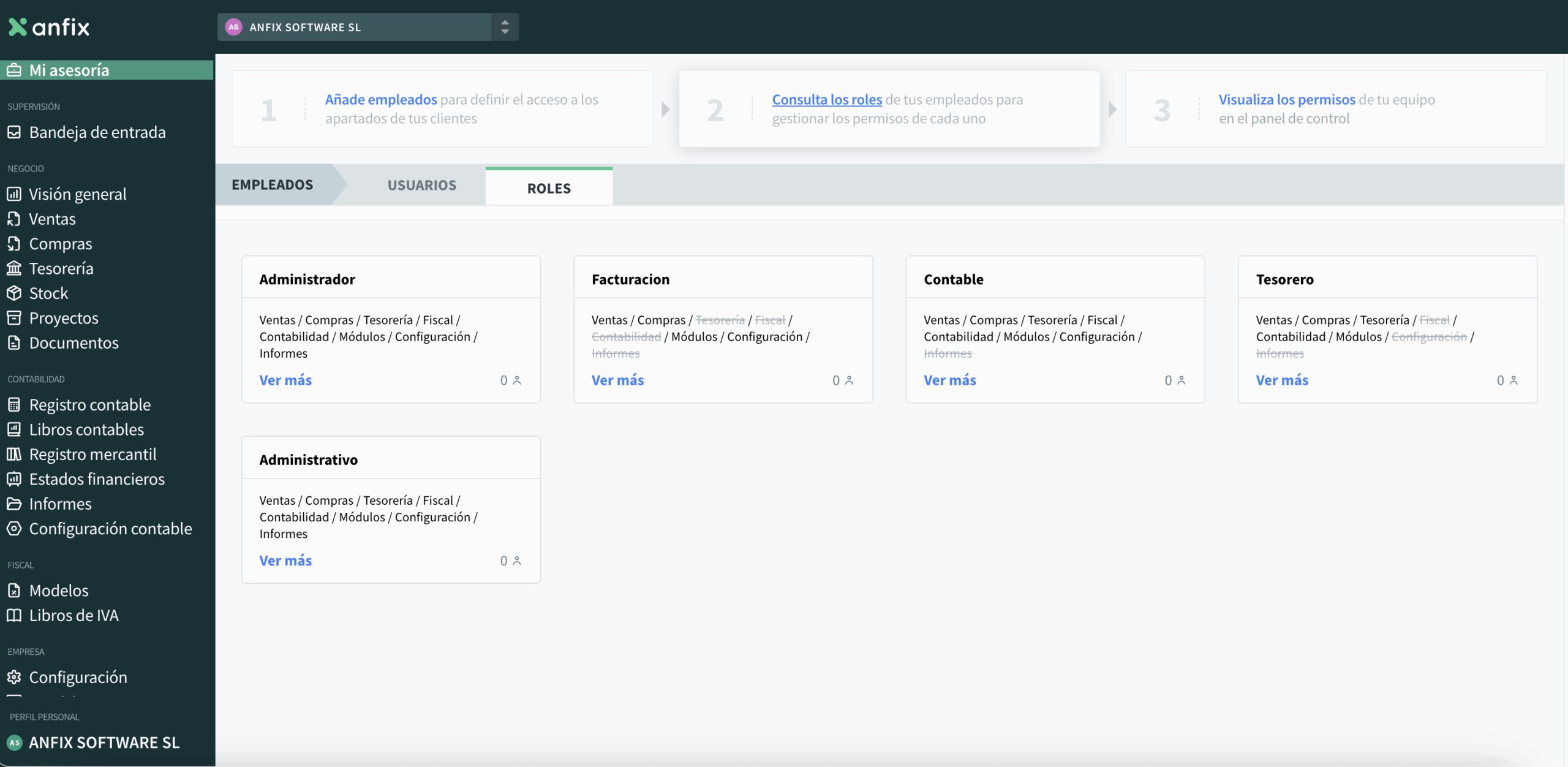 - Los roles de Aministrador y Administrativo son los más completos y tienen acceso a todo lo que tengamos contratado.