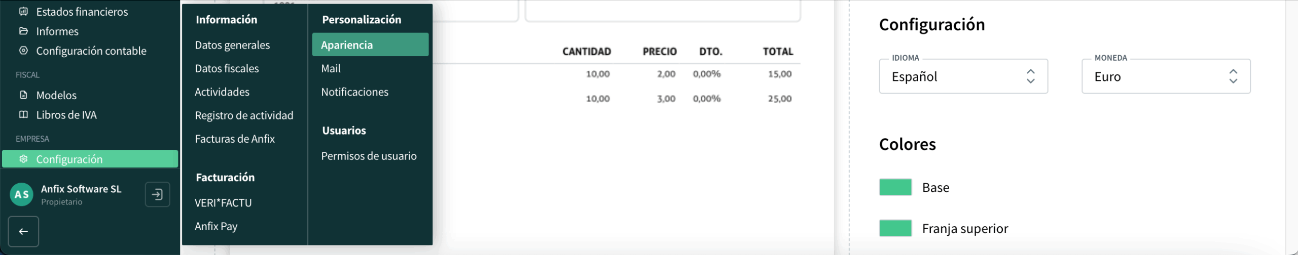 Desde Configuración → Apariencia puedes elegir la plantilla que quieres usar en tus facturas.